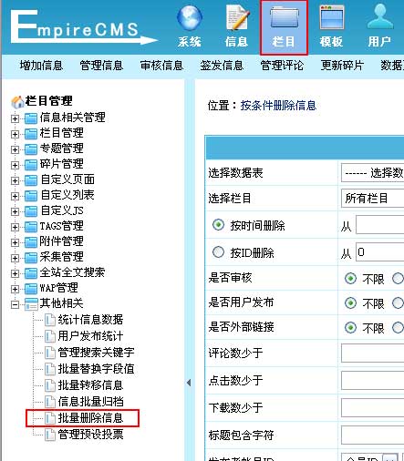 选择是否只删除游客/会员/管理员发布的信息。 |