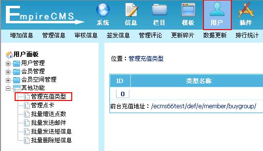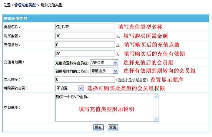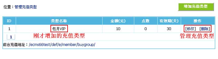 2、进入管理充值类型界面,点击“增加充值类型”按钮进入增加充值类型界面:
