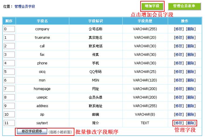 会员表单的字段显示顺序越小越前面。 |