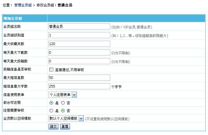 选择注册此会员组的会员默认使用的空间模板。 |