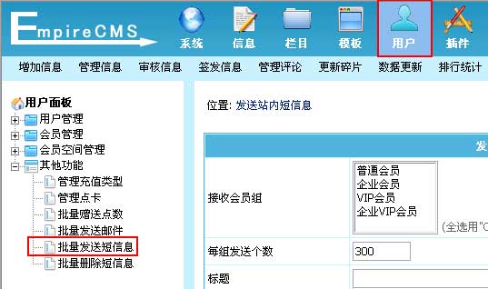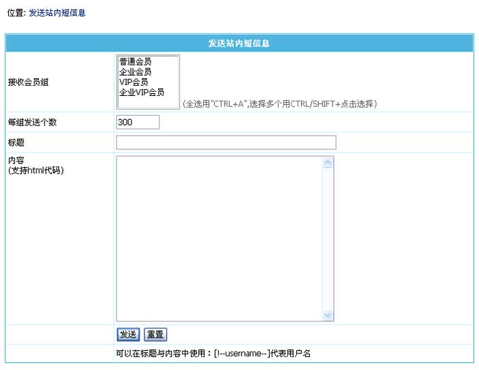 本功能为给前台会员批量发送站内信息。