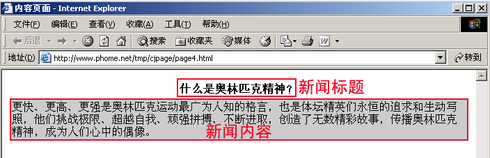 | 6、点击采集的内容页页面并查看源文件:http://www.phome.net/tmp/cjpage/page4.html |