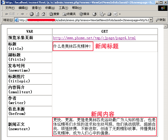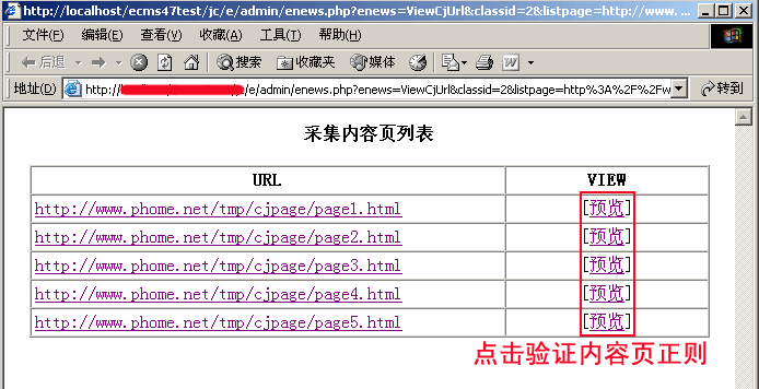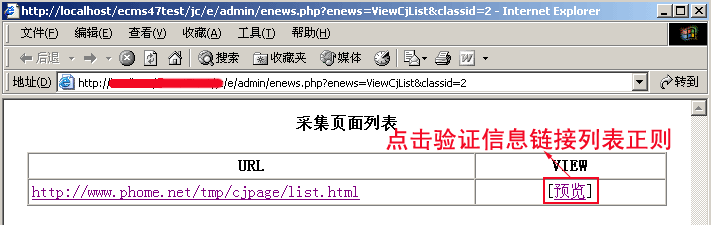 | (2)、采集页面地址:http://www.phome.net/tmp/cjpage/list.html |