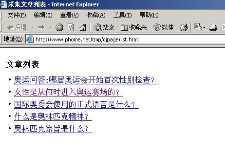 | 4、打开要采集的列表页面:http://www.phome.net/tmp/cjpage/list.html |