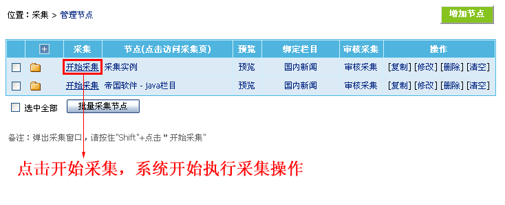 | 1、上面增加采集节点后,我们返回“管理节点”页面,如下: |