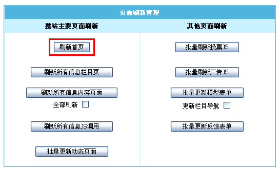 | 1、生成首页:点击“刷新首页”。 |