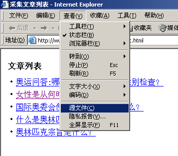 ![]() 点击查看“源文件” 点击查看,列表页源代码为如下: |