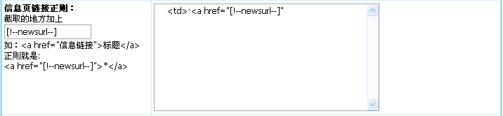 | (4)、设置“信息页链接正则”:由列表页的源代码得出。 |