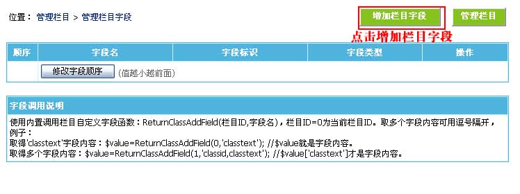 | 2、进入管理栏目字段界面: | ||||||||||||||||||||