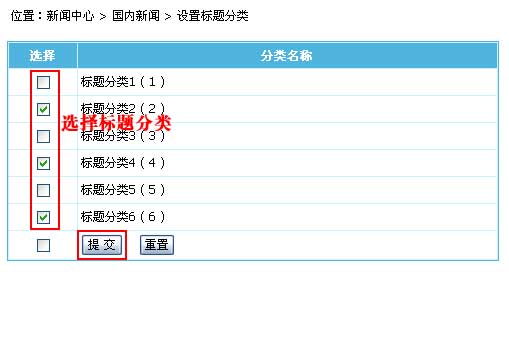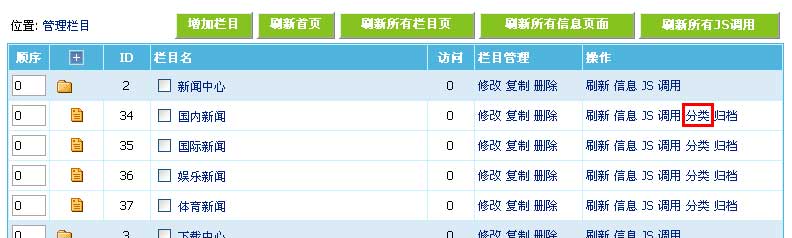 | 2、进入栏目标题分类设置界面,如下图: |