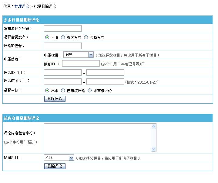 | 批量删除评论:按各种条件批量删除评论。 |