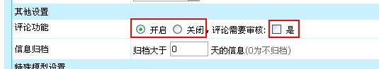 | 增加/修改终极栏目时,栏目属性选项设置中设置该栏目是否开启评论,如选择开启,可继续选择评论是否需要审核。 | ||||||||||||||