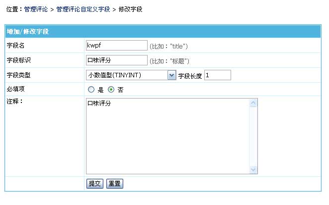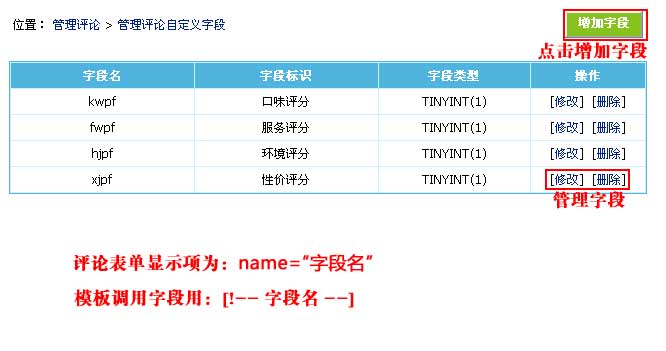 | 四、自定义评论字段 | ||||||||||||
