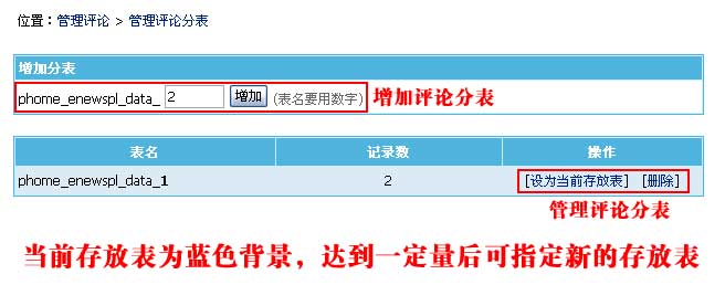 | 管理评论分表:评论支持分表,使评论容量更大,速度更快。 |