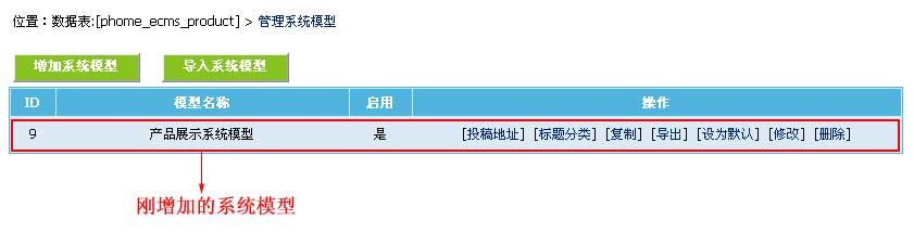 | 2、增加系统模型成功后,转至“管理系统模型”查看已增加的系统模型,如下图: | ||||||||||||||||||||||||||||||||||||||||||||||||||||||||||||||||||||||