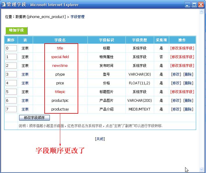 | 修改字段顺序后字段列表显示如下图: | ||||||||||||||||||||||||||||||||||||||||||||||||||||||||||||||||||||||