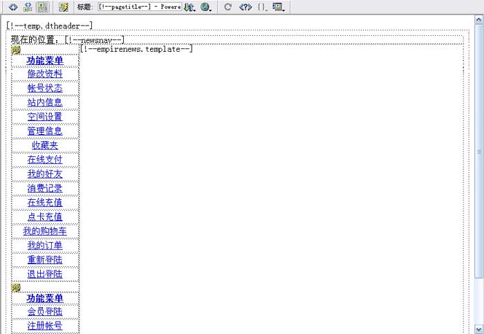 | 3、把控制面板模板复制到Dreamweaver后可进行可视化编辑,如下图: |