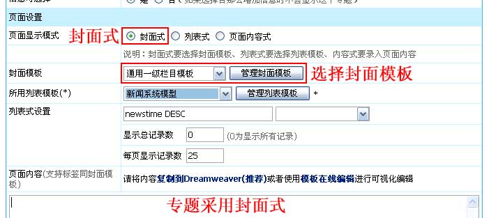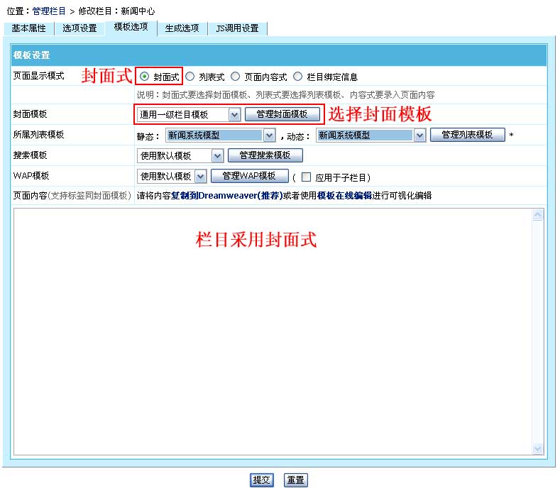 | 3、点击通用一级栏目模板的“修改”进入修改封面模板界面: |