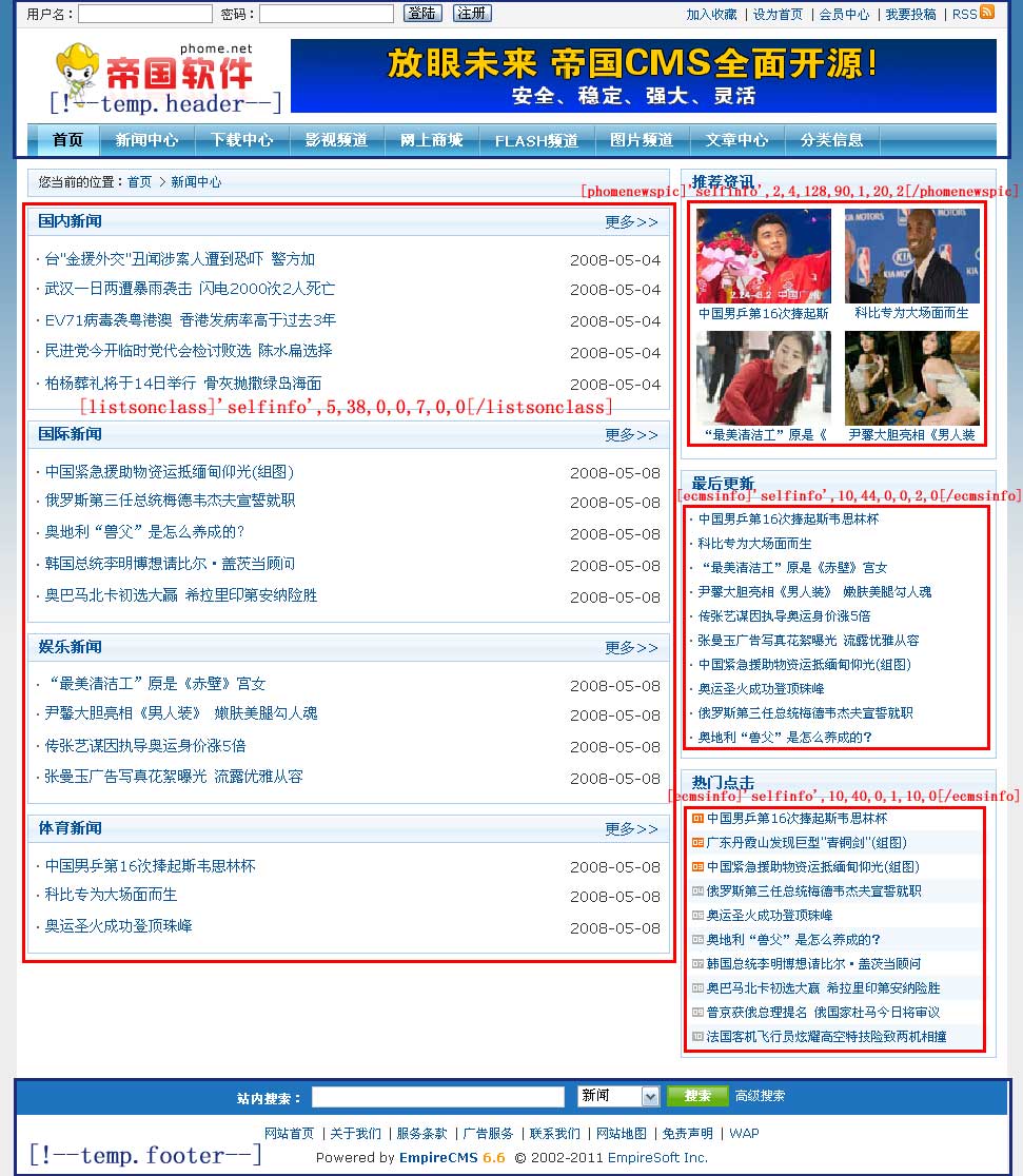 | 6、刷新栏目页,最终内容模板的预览效果: |