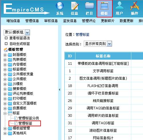 (四)、标签增加完毕后,即可直接在各个模板中使用与调用数据。