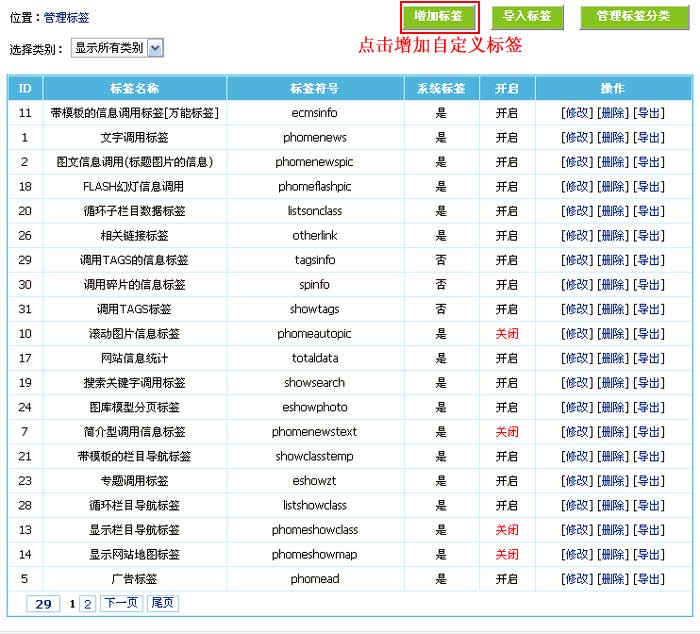 (三)、进入增加标签页面: